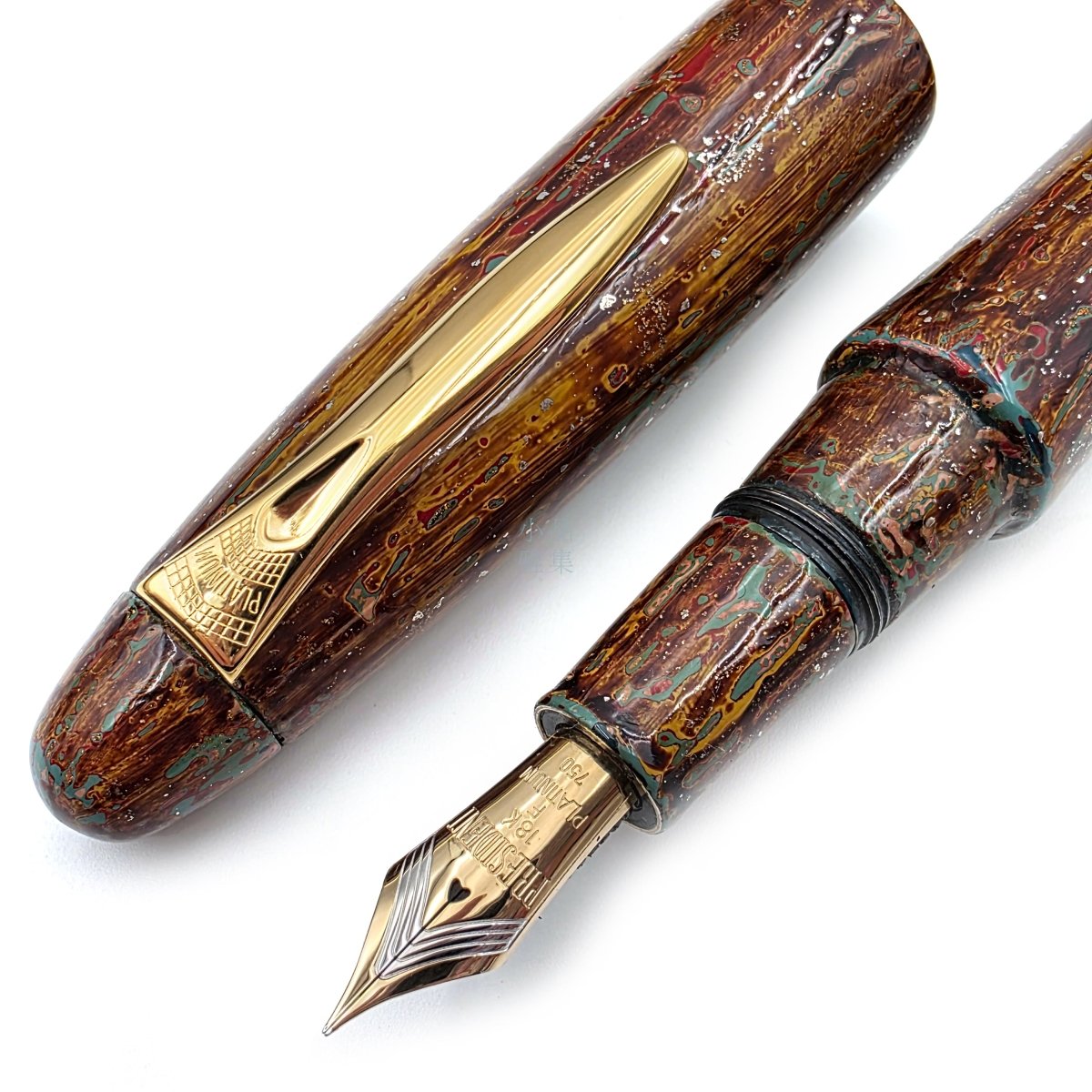 This piece is crafted on the Platinum Izumo fountain pen base, combined with the handcrafted natural urushi techniques of Taiwanese lacquer artisan Kun-Yang, showcasing the pinnacle of contemporary artisanal pen craftsmanship.